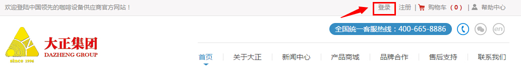 第一步:打开大正官网首页,在右上方,点击“登录”按钮(若您没有大正帐号请注册);